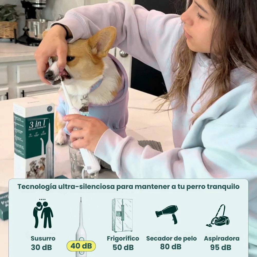 A diferencia de las herramientas ruidosas que pueden asustar a las mascotas, nuestro limpiador es prácticamente imperceptible al oído, ayudando a reducir el estrés, el miedo y las molestias durante la limpieza dental.